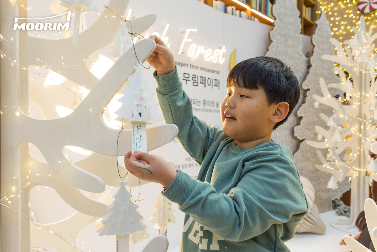 국내 저탄소 종이를 만드는 무림이 선보인 '위시 포레스트'. 사진제공=무림페이퍼 국내 대표 친환경 종이기업 무림페이퍼(대표 이도균)가 건강한 연말연시를 기원하며 스타필드 코엑스몰 별마당 도서관에서 내년 1월 31일까지 감성 종이 체험존 ‘위시 포레스트’를 선보인다고 3일 밝혔다. 코엑스몰 별마당 도서관은 매년 겨울 시즌, 새로운 테마의 전시와 초대형 트리 등을 선보이며 ‘크리스마스 명소’로 자리매김, 큰 사랑을 받고 있다. 올해는 특별히 ‘책 속에 펼쳐진 크리스마스 축제’를 테마로 ‘종이’라는 소재를 통해 순수한 동심을 전하고 지속가능한 가치를 알리고자 기획됐다.