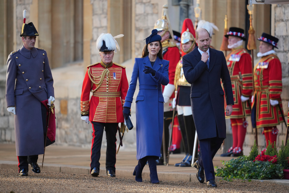 영국 윌리엄 왕세자와 케이트 미들턴 왕세자빈이 3일(현지시간) 영국 윈저성에서 열린 프랑크-발터 슈타인 마이어 독일 대통령의 영국 국빈 방문 환영식에 참석하고 있다. 연합AP