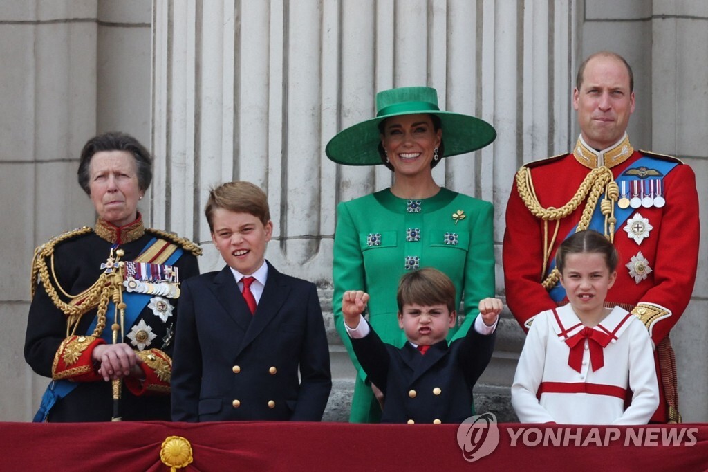 영국 왕실 가족들이 2023년 6월 열린 영국 왕실 찰스 3세 국왕 공식생일 기념 군기분열식 '트루핑 더 컬러'(Trooping The Colour)에 참석하고 있다. (왼쪽부터 연합AP 일명 '사우디 사파이어'로 불렸던 해당 주얼리는 과거 찰스 황태자와 다이애나비의 결혼을 축하하기 위해 사우디아라비아 왕자가 보냈던 주얼리 컬렉션과 동일한 라인의 제품으로, 2022년 고(故) 엘리자베스 2세 영국 여왕 재위 70주년 파티인 '플래티넘 주빌리(Platinum Jubilee)'를 통해 윌리엄 왕자가 물려받은 것으로 확인됐다. 케이트 왕세자빈은 앞서 미국에서 열린 환경상 시상식인 '어스샷 시상식'(2022)과 찰스 3세 국왕의 생일을 기념하는 열병식 '트루핑 더 컬러(Trooping the Colour)' 행사마다 해당 귀걸이를 착용하고 등장했다.
