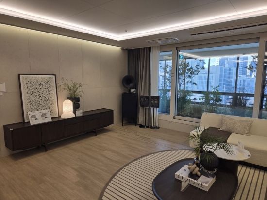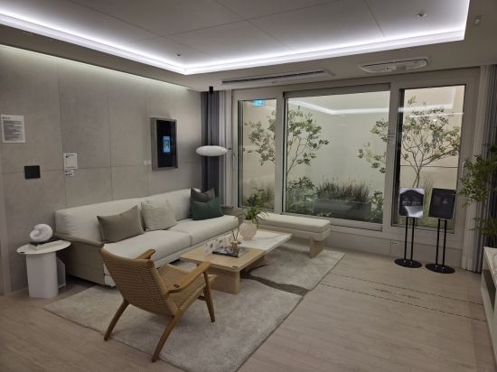 견본주택에는 전용면적 84㎡, 122㎡ 내부를 볼 수 있는 공간이 마련됐다. 특히 일반분양 가구수가 많은 84㎡에 사람들이 몰렸다. 베란다와 화장실, 부엌 등을 꼼꼼히 살폈다. 특히 드레스룸의 수납공간에 관심을 보이는 여성이 많았다. 오픈 발코니 설계로 실사용 공간은 넓어 보였다. 음식물쓰레기 처리기와 창고도 무상으로 설치되고, 스마트 사물인터넷(IoT) 시스템을 적용해 조명·난방 제어 등을 할 수 있도록 했다. 방범형 도어폰과 안전사고 조기경보 시스템 등 보안 설비도 돋보였다.