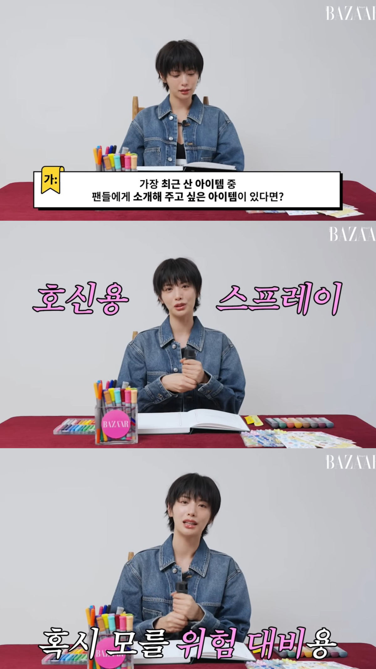 나나가 팬들에게 꼭 추천해주고 싶은 아이템으로 호신용 스프레이를 꼽았다. 유튜브 채널 'Harper's BAZAAR Korea' 영상 캡처 그러면서 “호신용 스프레이를 쓰지 않을 일들이 있길 바라지만, 혹시나 위험한 상황이 다가왔을 때 ‘자신을 좀 보호하자’라는 의미에서 이 호신용 스프레이를 꼭 필수템으로 추천해 드리고 싶다”고 전했다. 한편, 나나가 영상에서 언급한 ‘큰 사건’은 지난달 나나의 자택에서 발생한 강도 침입 사건으로 보인다.