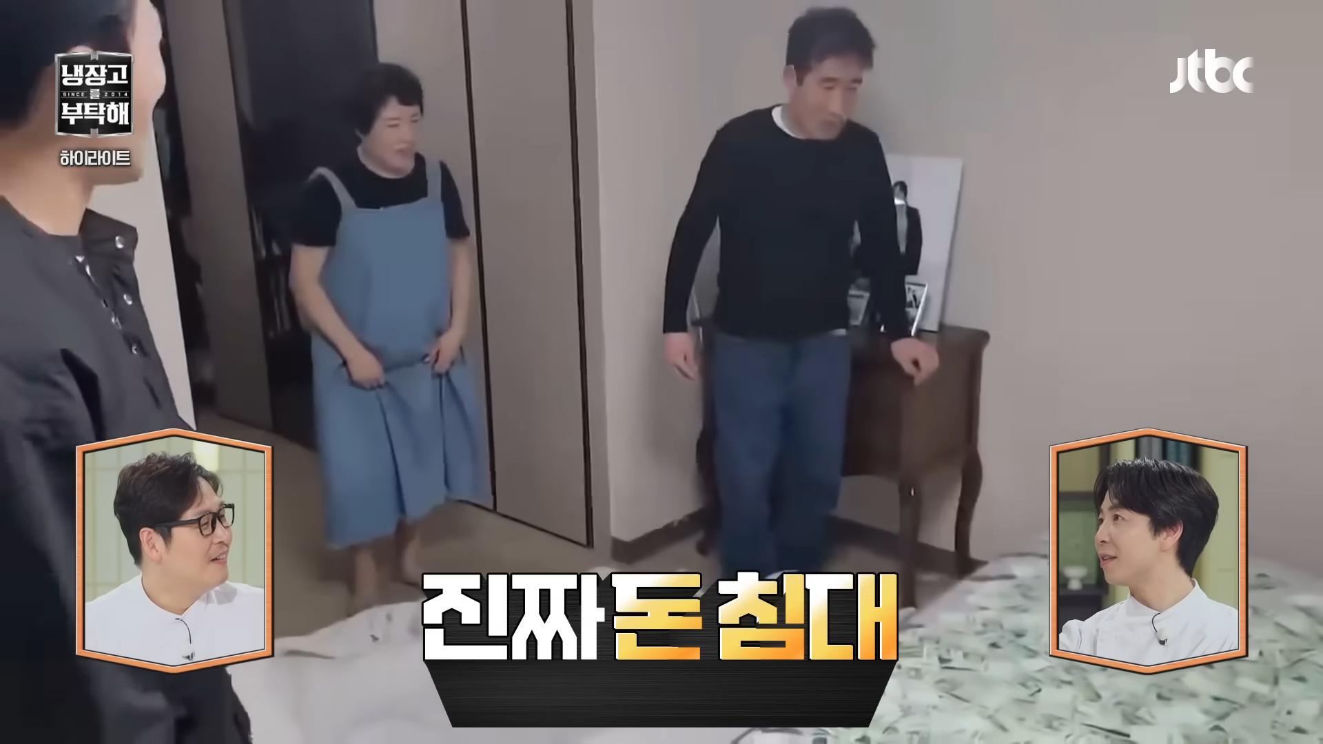 JTBC 예능 프로그램 ‘냉장고를 부탁해’ 방송 화면 캡처 방송에서는 실제로 김원훈이 부모님에게 현금이 가득 쌓인 침대를 깜짝 선물하는 영상이 공개됐다. 김원훈은 “1000만원 정도 된다. 2022년에 처음으로 잘됐을 때 정산을 받고 드린 것”이라고 설명했다. 이어 “무명 시절이 길어서 용돈도 받아썼다. 그게 늘 죄송했다”고 털어놨다. 어머니를 위해 신차를 선물한 일화도 전해졌다. 김원훈은 “차는 어머니 선물”이라며 “그동안 받은 게 많아서 마음의 빚이 있었다”고 말했다. 다만 그는 “차도 해드리고 용돈도 많이 드리니까 이제 내성이 생겨서 웬만한 건 감동이 없다. 집이 남은 것 같다”고 말해 웃음을 자아냈다.