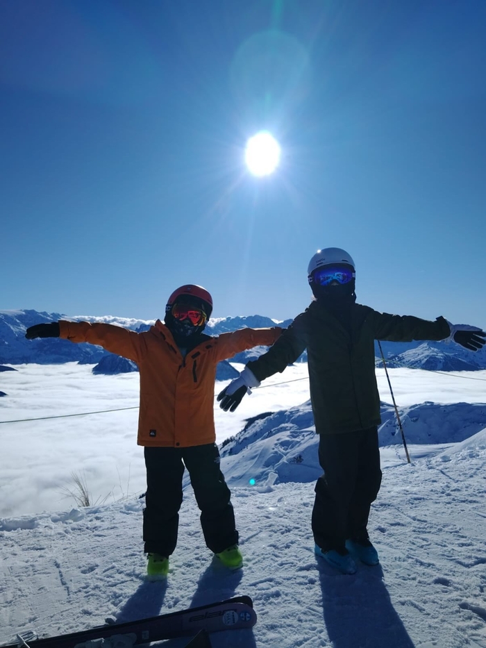가장 먼저 눈에 띄는 것은 스키장에서의 화목한 모습이다. 부부는 광활한 설원을 배경으로 다정하게 포즈를 취하는가 하면, 부모를 쏙 빼닮은 두 자녀는 스키복을 갖춰 입고 눈 위에서 활기찬 에너지를 발산하고 있다.