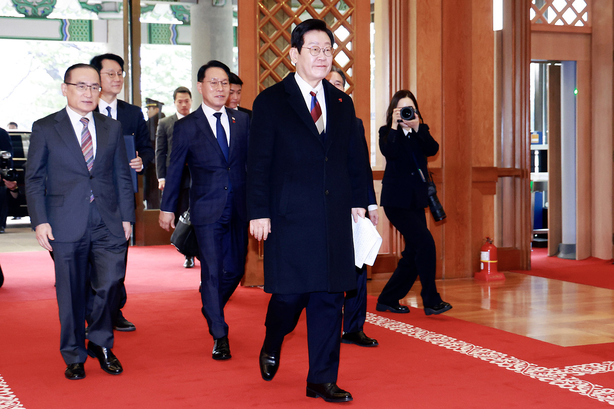 이재명 대통령이 29일 서울 종로구 청와대로 첫 출근하며 본격적인 업무에 들어갔다. 문재인 전 대통령이 퇴임한 2022년 5월 9일 이후 1,330일만이다. 자정을 기점으로 청와대 본관 앞에 봉황기가 다시 게양되고, 대통령실 공식 명칭도 청와대로 변경됐다. 본격적인 일정에 앞서 이 대통령은 청와대 본관에서 차담 회의를 주재하며 참모들로부터 주요 현안과 업무 계획을 보고받았다. 이후 국가위기관리센터를 방문해 안보 및 재난 분야 시스템을 점검했다.