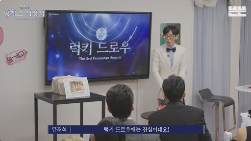 엔터테인먼트 브레이크에서는 럭키드로우가 진행됐다. 제주 명물 찐빵, 자연송이, 고급 커피잔 세트를 두고 추첨 경쟁이 과열되며 우스운 소동이 이어졌다. 추첨 룰을 두고 목소리를 내던 한 참석자 말을 이광수가 막자, 대선배 황정민이 “쉿” 하며 제지하는 장면에서 이광수의 얼어붙은 표정이 폭소를 자아냈다. 송승헌이 자연송이 한 상자의 주인공이 되자 의자를 번쩍 들고 기쁨을 표현하는 모습 역시 웃음을 더했다.