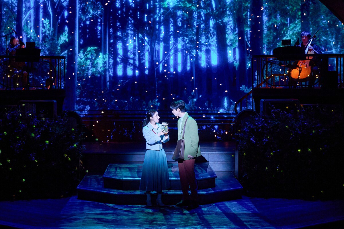 이 두 로봇이 우연히 만나 함께 여행을 떠나면서 작품은 본격적으로 가장 인간적인 감정 ‘사랑’을 탐구한다. LP 플레이어에서 흘러나오는 오래된 음악, 종이컵 전화기로 나누는 대화, 반딧불이를 바라보는 순간들. 미래를 배경으로 하면서도 작품 곳곳에 배치된 아날로그적 소재들은 어쩌면 해피엔딩 특유의 서정적 분위기를 만들어낸다. 윌 애런슨(작곡)과 박천휴(작가), 일명 윌휴 콤비가 만들어낸 어쿠스틱한 멜로디와 섬세한 가사는 이런 감성을 더욱 깊이 있게 전달한다.
