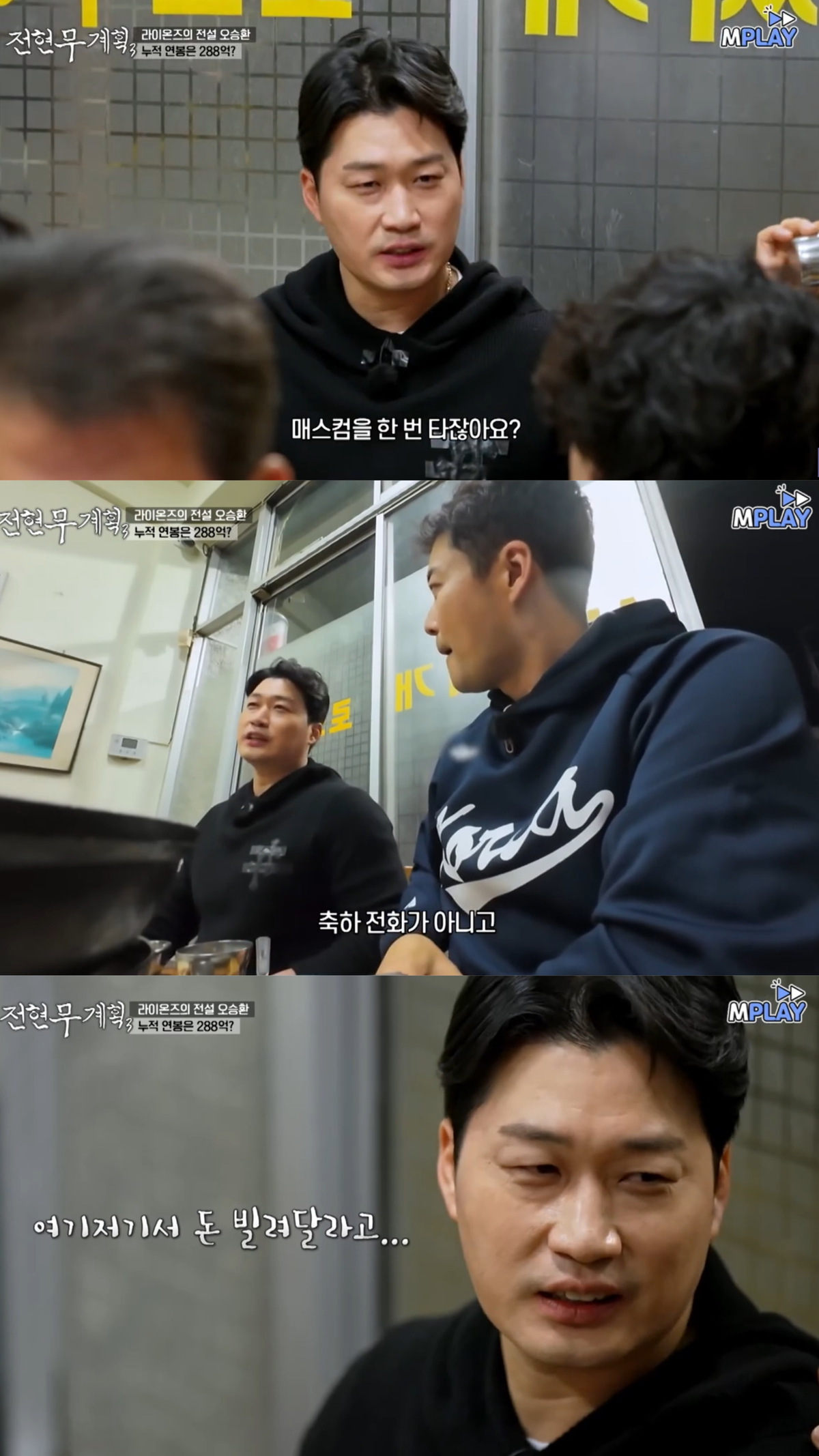 식당에 자리 잡은 전현무는 “이곳에 대한 에피소드가 있냐”고 물었다. 오승환은 “제가 2군에 있을 때 여기서 낮술을 하곤 했다"라면서 "아내, 친구들과 와서 아픔을 달랬던 곳”이라고 그 시절 추억에 젖었다.