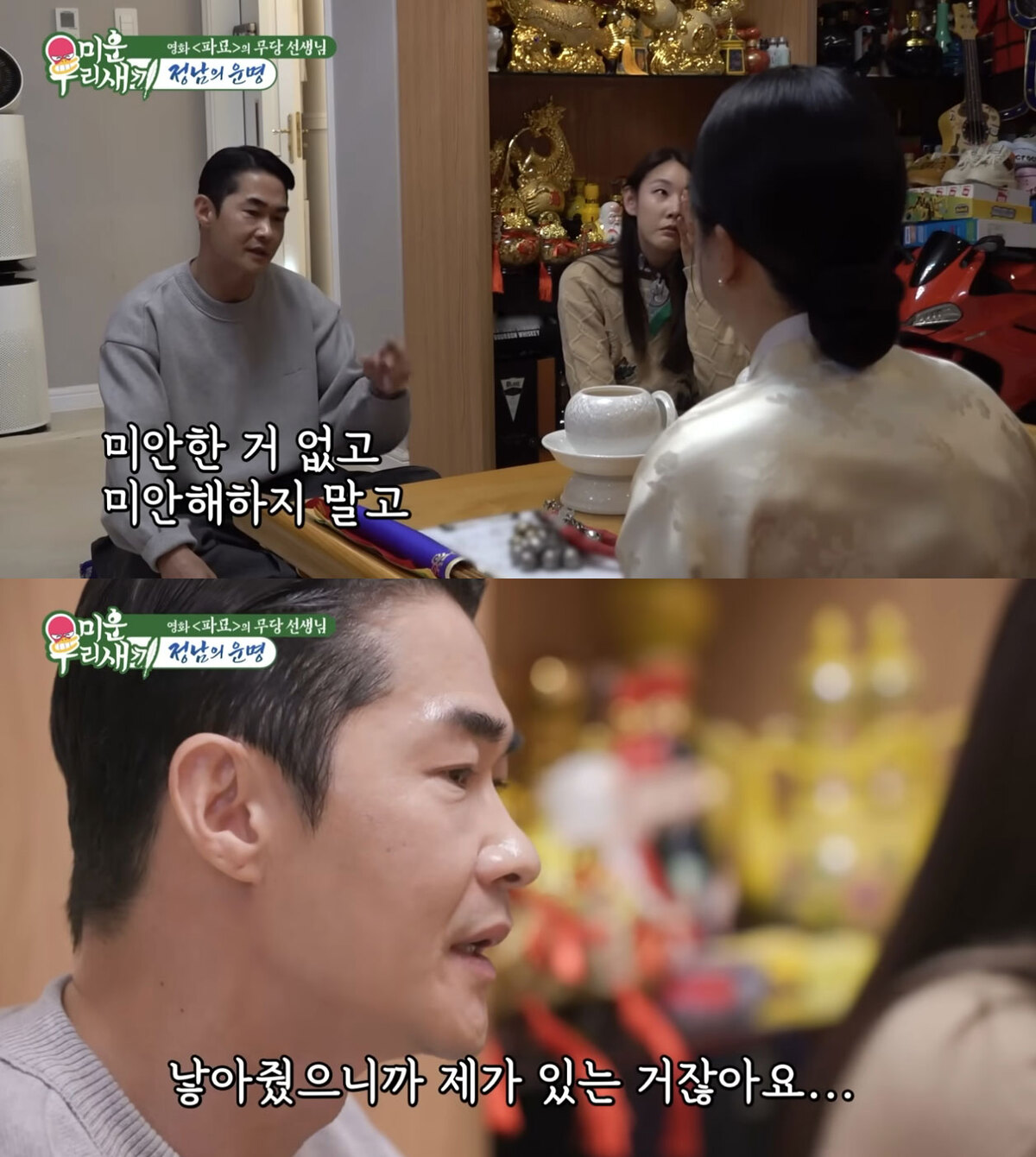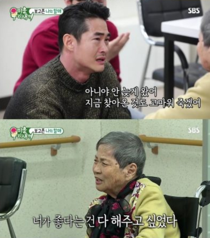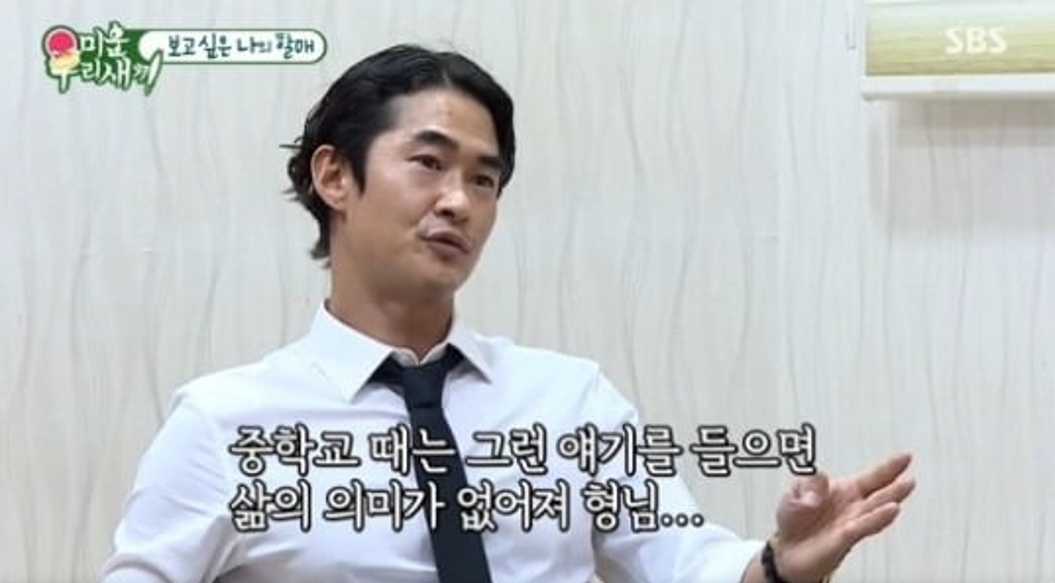 배정남이 무속인을 통해 전해진 아버지의 말을 듣고 “미안해하지 말라”고 답하는 장면. 유튜브 채널 ‘SBS Entertainment’ 캡처 배정남의 가족사는 이번 방송에서 처음 드러난 이야기가 아니다. 그는 같은 프로그램을 통해 자신의 성장 과정을 여러 차례 공개하며, 부모의 빈자리를 채워준 존재로 하숙집 할머니를 언급해왔다. 2018년 12월 16일 방송에서는 배정남이 어린 시절 자신을 돌봐줬던 하숙집 주인 차순남 할머니를 20여 년 만에 다시 만나는 모습이 전파를 탔다. 부모의 이혼 이후 초등학생 때부터 하숙 생활을 했던 그는 “할무이, 저 기억해요? 늦게 와서 미안합니다”라고 말하며 할머니를 보자마자 눈물을 쏟았다. 이에 차순남 할머니는 “기억나지 정남이. 잘 커줘서 고맙다. 지금 찾아와준 것도 고마워 죽겠어”라고 답하며 그를 맞았다.