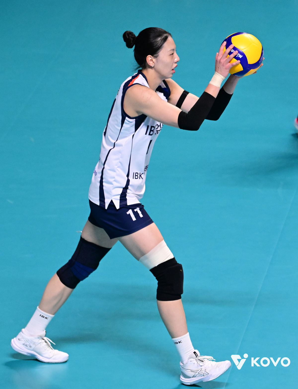지난 시즌 커리어하이를 찍은 뒤 생애 첫 FA 자격을 얻어 IBK기업은행에 잔류한 육서영은 비시즌 동안 대표팀에서도 뚜렷한 존재감을 드러냈다. 이후 팀에 복귀해 치른 통영 KOVO컵에서 MVP에 오르며 ‘육서영 전성시대’를 예고했다. 그러나 막상 2025~2026시즌이 시작되자 상대 목적타 서브에 리시브 약점이 두드러졌고, 강점인 공격력도 무뎌졌다. 육서영은 지금도 100% 컨디션은 아니라고 자가진단하고 있다. 그는 “리듬은 아직도 찾아가는 중인 것 같다. 조금 더 잘 할 수 있을 것 같은데, 리시브에 대한 불안함이 없다면 거짓말인 것 같다. 그래서 정확하게 보내는 걸 목표로 하기보다는 범실 없이 올려만 놓으면 동료들이 이단으로 올려줄테니, 그걸 잘 처리하자는 마음으로 하고 있다. 옆의 동료들이 힘들겠지만, 저 역시 열심히 하고 있다”라고 설명했다. 육서영은 매세트 중반 후위 세 자리 때 황민경과 교체된다. 한창 경기를 뛰다 코트에서 물러났을 땐 무엇을 보고 있을까. 육서영은 “아웃사이드 히터 전위에 빅토리아가 있으니 빅토리아의 공격에 대한 상대 블로킹이나 수비 대응을 유심히 지켜본다. 지켜보고 전위 때 코트에 복귀하면 공격 작업에 어느 정도 힌트를 얻을 수 있다”라고 설명했다.