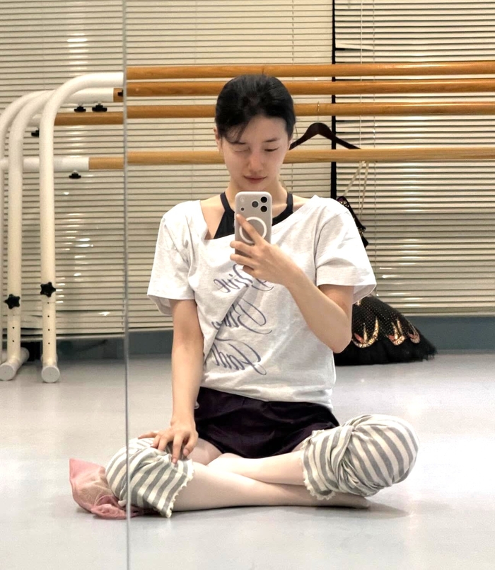 가장 눈길을 끄는 것은 발레 연습실에서의 모습이다. 수지는 편안한 티셔츠와 레깅스, 발레 슈즈를 착용한 채 거울 셀카를 찍으며 수수한 매력을 뽐냈다. 화장기 없는 내추럴한 모습임에도 불구하고 투명한 피부와 뚜렷한 이목구비가 돋보인다.