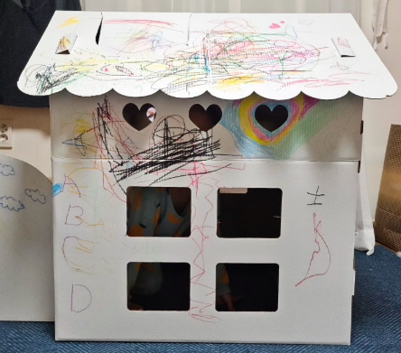 품절 대란의 주인공은 다이소의 '색칠 놀이가 가능한 종이집'이다. 이 제품은 2024년 말 출시된 조립식 종이집으로, 완성 시 크기가 71㎝×61㎝×83㎝에 달한다. 키 95㎝ 안팎의 아이가 직접 들어가 놀 수 있도록 설계돼 단순 장난감을 넘어 '아이 전용 공간'으로 활용할 수 있다는 점이 특징이다.
