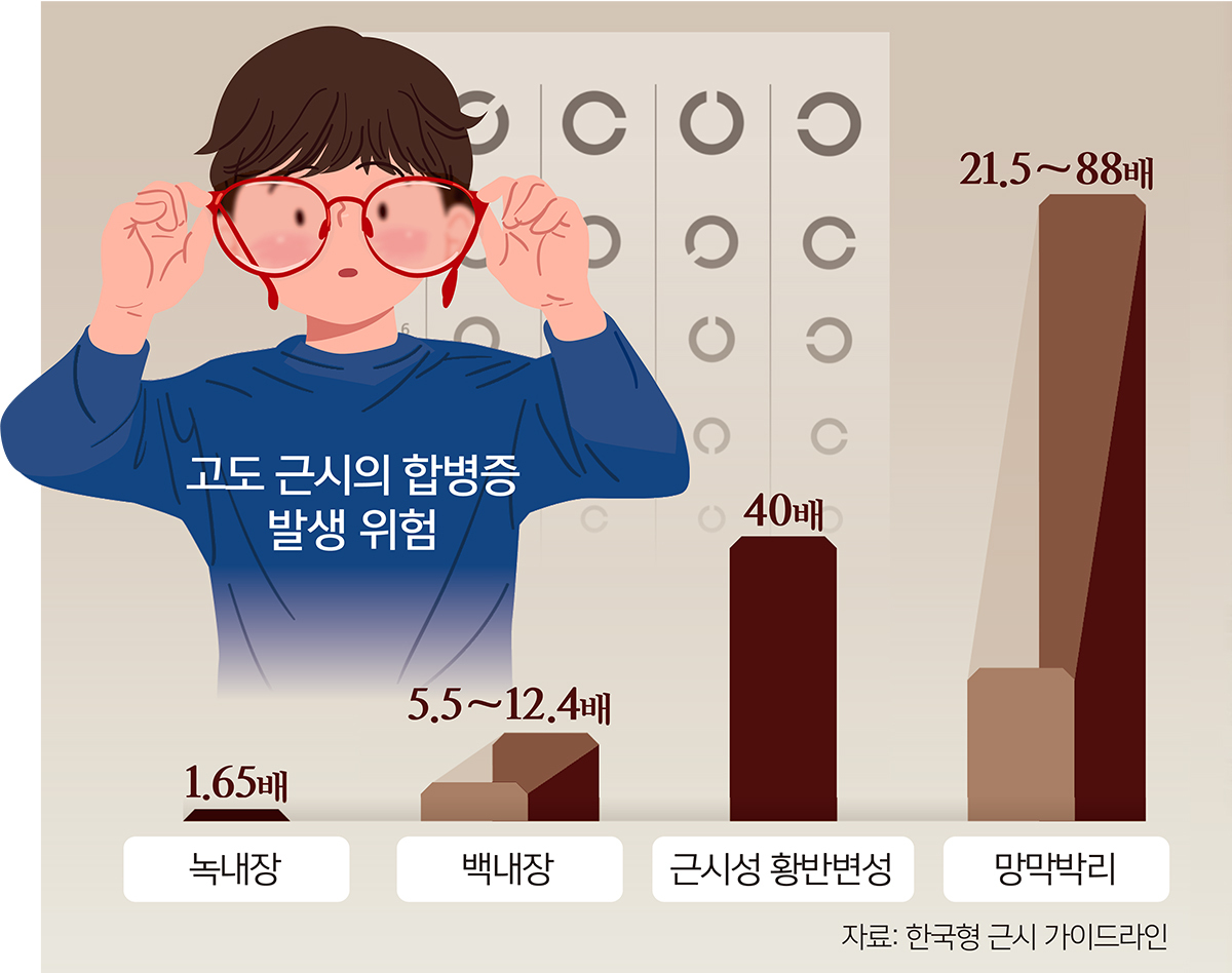 “근시는 소아기에 발생해 진행되면 되돌이킬 수 없는, ‘비가역적인 성장관련 질환’이다. 고도근시가 되면 백내장(5.5∼12.4배), 녹내장(1.65배), 망막박리(21.5∼88배), 근시성 황반변성(40배) 등 다양한 합병증 발생 확률이 증가한다. 최근 근시를 늦출 수 있는 다양한 예방법이 개발됐기 때문에 소아에서 근시가 고도근시로 진행되기 전에 조기 발견해 예방하는 것이 최선이다. ”