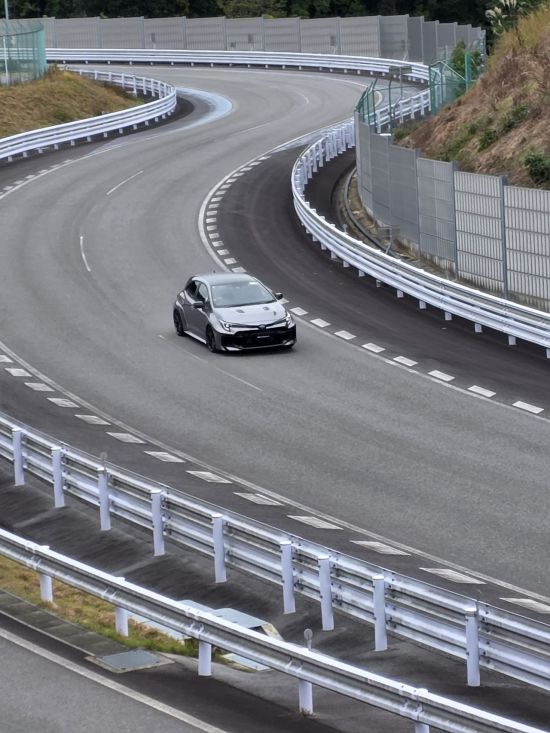이날 한국 취재진은 컨트리로드 코스 설계에 참여했던 토요오카 부장, 평가 드라이버로 있는 야부키 히사시 처완 기능양성부 주사 등이 운전한 GR야리스와 GR코롤라 동승 시승을 했다. 최고속도 200㎞, 선회구간에서도 시속 100㎞를 넘기며 고저 차가 큰 곳에선 차가 놀이기구처럼 날아오른다.