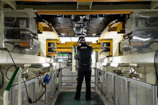 완성차 조립라인에서 볼 법한 컨베이어 벨트가 없다. 효율적으로 만들기보다는 정밀하게 만드는 게 더 중요하다고 여겨 그에 맞춰 셀 생산 방식을 적용하고 있다. 이는 차체 하부 용접, 서스펜션 장착 등 공정을 구역별 셀 단위로 나눈 방식을 뜻한다. 각 셀을 무인운반차(AGV)가 연결하며 생산공정이 이어진다. 컨베이어라면 정해진 시간 안에 공정을 마치고 다음으로 넘어가지만 이곳에선 필요할 경우 멈춰 세워 세밀하게 진행해야 하기에 이러한 방식으로 최종 조립과정을 거친다.