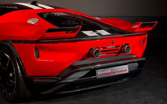 849 테스타로사의 4.0리터 V8 트윈터보 엔진은 830마력을 발휘하며 여기에 3개의 전기모터가 더해져 총 1050마력을 자랑한다. 이는 전작인 SF90 스트라달레 대비 50마력 증가한 수치다. 성능 향상에도 대대적인 경량화 작업을 통해 SF90 스트라달레와 같은 중량을 유지하면서 페라리 양산차 사상 최고의 출력당 중량비(1.5㎏/CV)를 달성했다. 정지 상태에서 시속 100㎞까지는 단 2.3초 만에 도달한다.